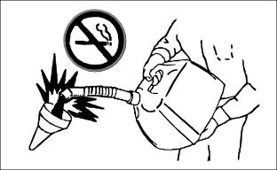 · Do not refuel machine while you smoke, when machine is near an open flame or sparks, or when engine is running. Stop engine and allow to cool before filling.