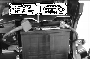 9. Disconnect the negative battery cable or remove the spark plug wire (for gasoline engines) before servicing the machine.
