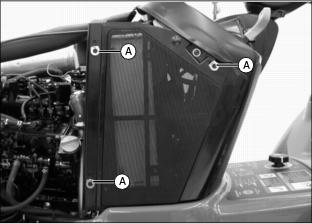 3. Flip up and turn each spring-loaded fastener (A) into slots in side panels.