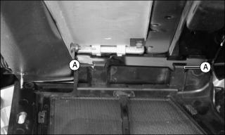 1. Lift rear of hood (A) and tilt to fully upright position.