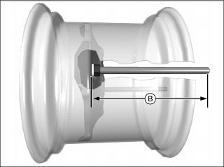 2. Note location of tire valve stem (A). Install rods through square holes in rim center as shown.