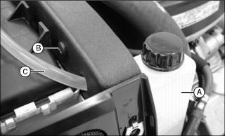 ˇ Pull overflow hose (C) from tank and remove tank.