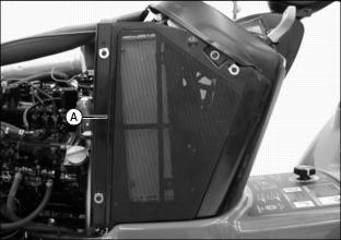 4. Remove dipstick (A) on left side of machine. Wipe dipstick with a clean rag.