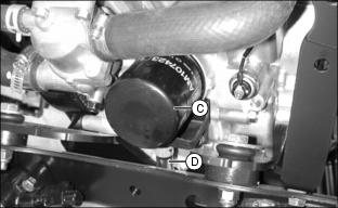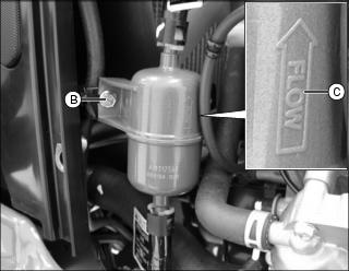 8. Connect hoses to new filter making sure filter arrow (C) is pointed in the direction of fuel flow.