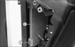 6. Release spring-loaded fasteners (C). Move oil cooler (D) and clean cooling fins on both sides of oil cooler using compressed air.