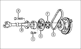 NOTE: To allow sheaves to fit closer together and increase belt tension, remove shim (F). Save shim for future use.