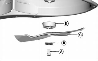 4. Loosen and remove bolt (A), washer (B), and blade (C).