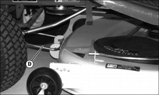 1. Make sure deflector cup (D) is seated properly between mower spindle and blade.