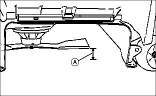 1. Make sure yellow indicator (A) is aligned with proper mark for mower deck model installed. If not, adjust lift assist spring so indicator is aligned with correct mower deck mark.
