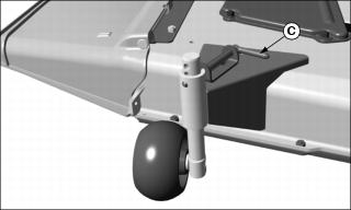 · 54C Mower - Pull pin (C) outward and move wheel to operating position. Release pin to lock wheel in position.