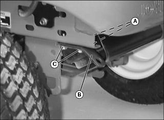 • Slide two M8 clamp-on nuts (A) over holes on right-front side of tractor frame.