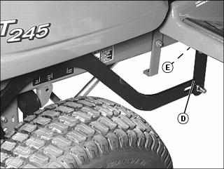 2. Remove lift bar assembly foot lift bracket (D) from pedal (E), by removing two M10x30 bolts and locknuts.