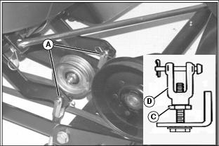 3. To decrease lift height: Loosen jam nut (C) and turn yoke (D) counterclockwise. Tighten nut.