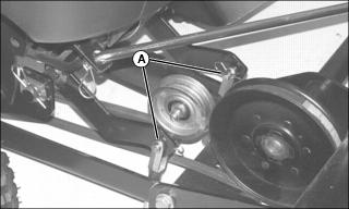 4. Adjust yokes (A) on snowthrower frame, if necessary: