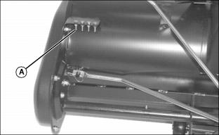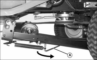 1. Pivot tightening lever (A) forward and lock under snowthrower frame to tighten belt.