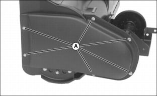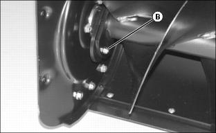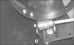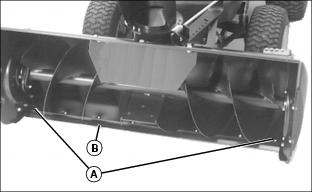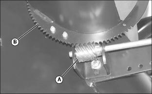Apply recommended grease on worm gear (A), and between chute (B) and chute base.