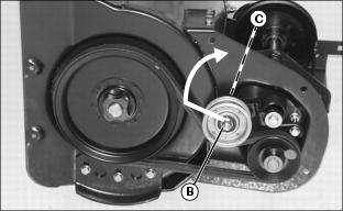 2. Place wrench on idler bolt (B) and turn clockwise.