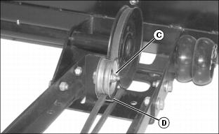 4. Loosen bolt (C) and pivot belt guide (D) away from belt.