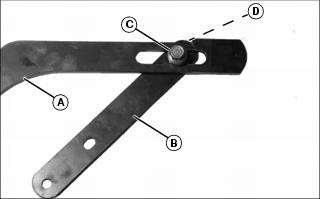 Attach lift bar (A) to foot lift bracket (B) with shoulder bolt (C). Be sure shoulder bolt rides in the slot of lift bar. Secure with M10 locknut (D).