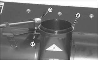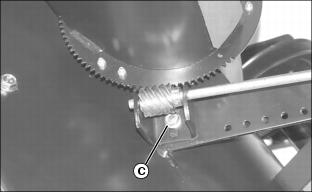 4. Move worm gear against teeth on discharge chute and tighten nut (C).