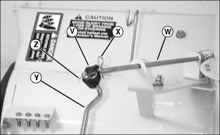 12. Insert end of chute control rod (Y) into U-joint and fasten with small quick-release pin (Z).