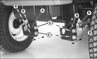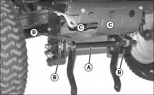 1. Slide left side of front lift shaft (A) and then right side into D-shaped holes of front brackets (B).