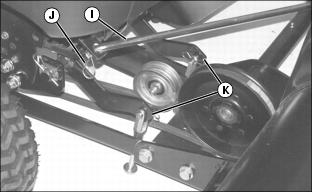 9. Fasten sway bar (I) to sway bar bracket with large quick-release pin (J).