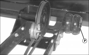 5. Pivot belt tightener lever (G) to the rear to loosen belt.