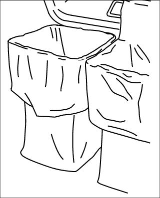 NOTE: Be sure to drape enough of the plastic bag over the outside of the cloth bag on all four sides so the bags can easily be tied shut after filling.