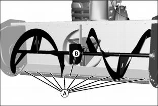 Neither the front, auger gearbox, or the rear, blower drive gearbox have serviceable components. However, both gearboxes have removable plugs for checking gearbox lubricant level, and adding lubricant, if necessary.