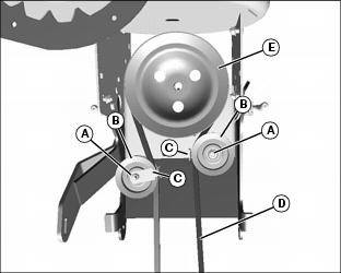 • Tensioning sheave (D) rotates freely, and is not damaged.