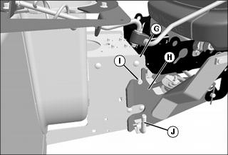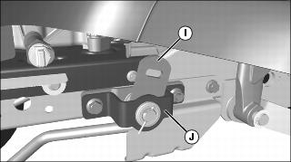 5. Verify that outside rockshaft bracket (I) does not interfere with the mounting plate (J):