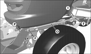 7. Install rear yoke of longer outer lift rod (O) onto rockshaft bracket (I) with M10x28 drilled pin (F) and locking ring.