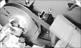 4. Measure the top surface of the belt width at (A). Dimension should be a minimum of 27 mm (1.1 in.).