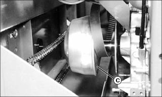 6. Turn adjustment bolts (C) at both sides to remove chain sag. Make sure chain tension is the same at both sides of vehicle.