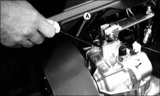 3. Remove dipstick (A) located on the top of the transaxle housing. Wipe dipstick clean.