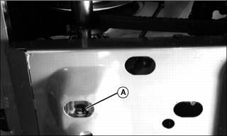 3. Access drain plug (A) through slot on underside of machine. Remove plug and drain oil.