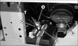 IMPORTANT: Avoid damage! Opening the air cleaner canister allows dirt and debris to enter engine. Install cover immediately after removing battery to keep contamination to a minimum.