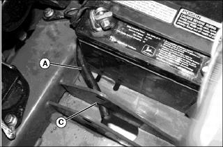 NOTE: If your battery is equipped with rubber, vent hose, make sure vent cap is installed so hose is on negative (-) side of battery for 4x2 or positive (+) side of battery for 6x4.