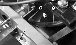 · 4x2 - Route hose through drain hole (B) in frame or over back side of frame rail (C). Make sure hose does not extend too far below vehicle where it could be pulled off by ground debris.
