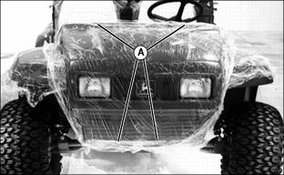 6. Install hood and tighten top screws first. 7. Push hood upward leaving space around headlight housings. Tighten bottom screws. Lubricate Front King PinsNOTE: Refer to Service Lubrication section of operator's manual for recommended lubricants. 1. Lubricate grease fitting (A) on each king pin bushing with one or two shots of recommended grease. 2. Wipe off excess grease from fitting. Check Fluid LevelsNOTE: Refer to the Service sections of the operator's manual for information concerning check locations and proper fluid levels. 1. Check engine coolant level (GATOR 6x4). Clean and Polish Plastic Hood and Fenders1. Remove any dust or dirt with water. 2. Dry thoroughly to avoid water spots. 3. Spray PLEDGEŽ1 onto plastic surfaces and leave on for 30 to 60 seconds. |