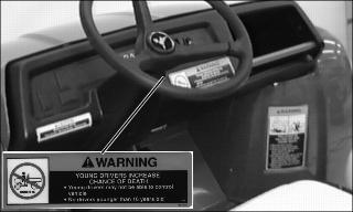 · The utility vehicle is not intended for use on highways or public roads. Do not operate vehicle on a road where the vehicle may be a hazard to faster-moving traffic.