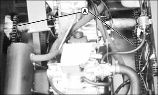 Lubricate one grease fitting (A) on each king pin bushing with one or two shots of grease.
