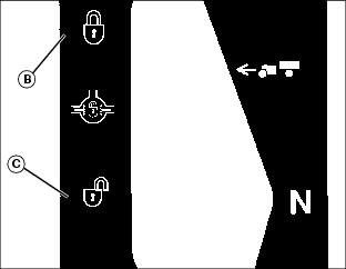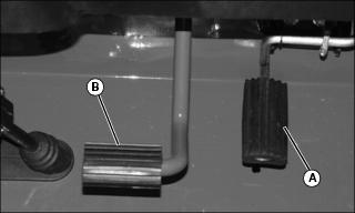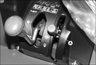 Differential lock (A) provides better traction when rear wheels start to slip. Engaging the differential lock will cause all rear wheels to turn together at equal speed.