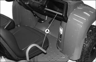 Hand holds (A) are provided for passenger balance when driving over rough terrain. Use dash bar and side rails on seats for stability.