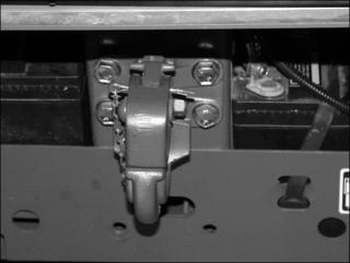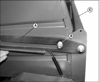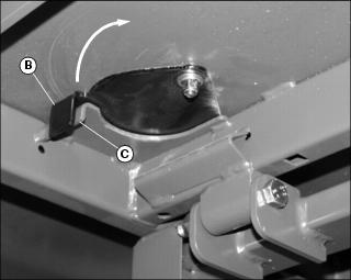 3. To raise side panel, lift latch (A) and raise panel (C) until the lower detent (D) in the latch engages latch pin (B).