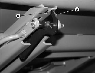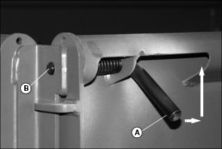 3. Pull up on the latch handle (A) until it connects into slot of support arm.