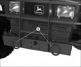 5. There are two lifting rings (E) on the front of the vehicle also.