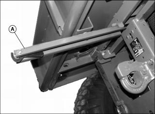 NOTE: The support arm has a latch handle (A) that will hold the lowered tailgate firmly to the support arm (B).