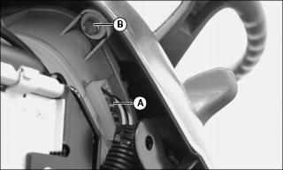 5. Push red cover (B) away from positive (+) battery cable and remove cable from battery.